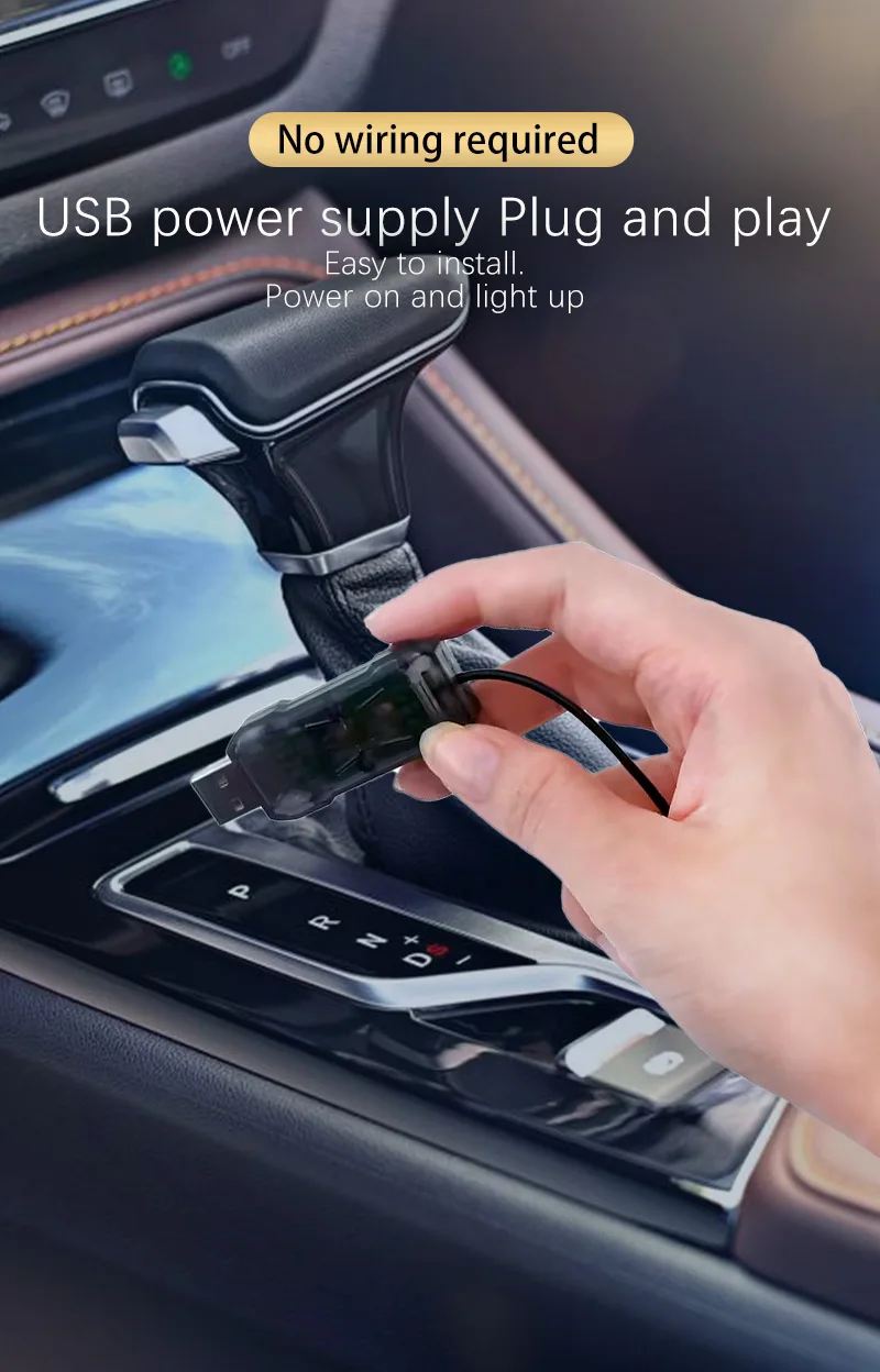 Car indoor atmosphere light, hose light strip, there is a seam can be inserted, enhance the atmosphere of the car interior, no need to remove the original car parts.