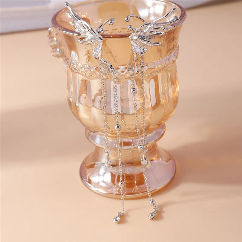 Aihua 1pc Female Y2K Fairy Butterfly Tassel Clip Earrings for Women Girls Elf Angel Ear Cuff Earring Fashion Jewelry Gifts